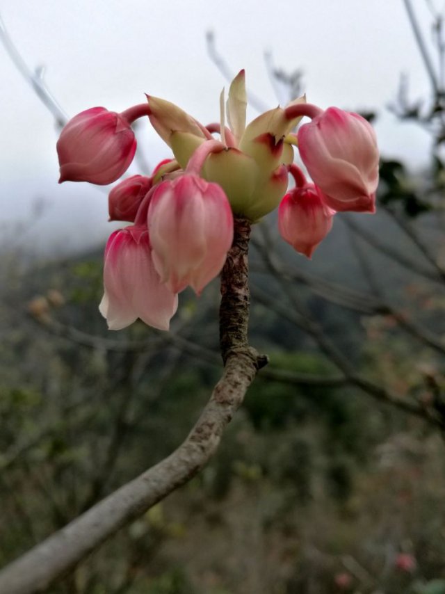 "這種花的特別之處在于先開花,后長葉。"梧桐山風(fēng)景區(qū)管理人員介紹,吊鐘花開花的順序也十分有趣。枝頭小小如嫩筍般的就是它的花苞。當(dāng)"嫩筍"每一片包片的邊緣開始變成紅色,"嫩筍"的頂部就開始綻開,第一朵風(fēng)鈴狀的小花從"筍"尖"破繭而出"。待第一朵花長好后,其他花方才陸續(xù)相繼開放。