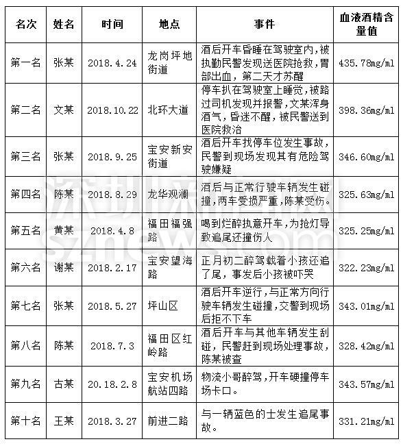 2018年深圳交警查處十大“虎王”案例: