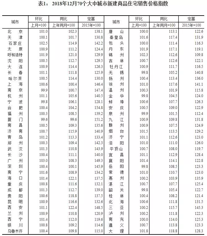 16日,國(guó)家統(tǒng)計(jì)局公布的“2018年12月份70個(gè)大中城市商品住宅銷售價(jià)格變動(dòng)情況”顯示,雖然一線城市新房?jī)r(jià)格年底有所上漲,但二三線城市房?jī)r(jià)保持穩(wěn)定。