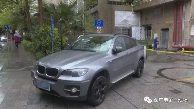 今天上午九點(diǎn)多,《第一現(xiàn)場》記者來到景源華庭小區(qū),看到一輛深灰色的寶馬車還停在停車場的出口位置,但車上已經(jīng)沒有人了。