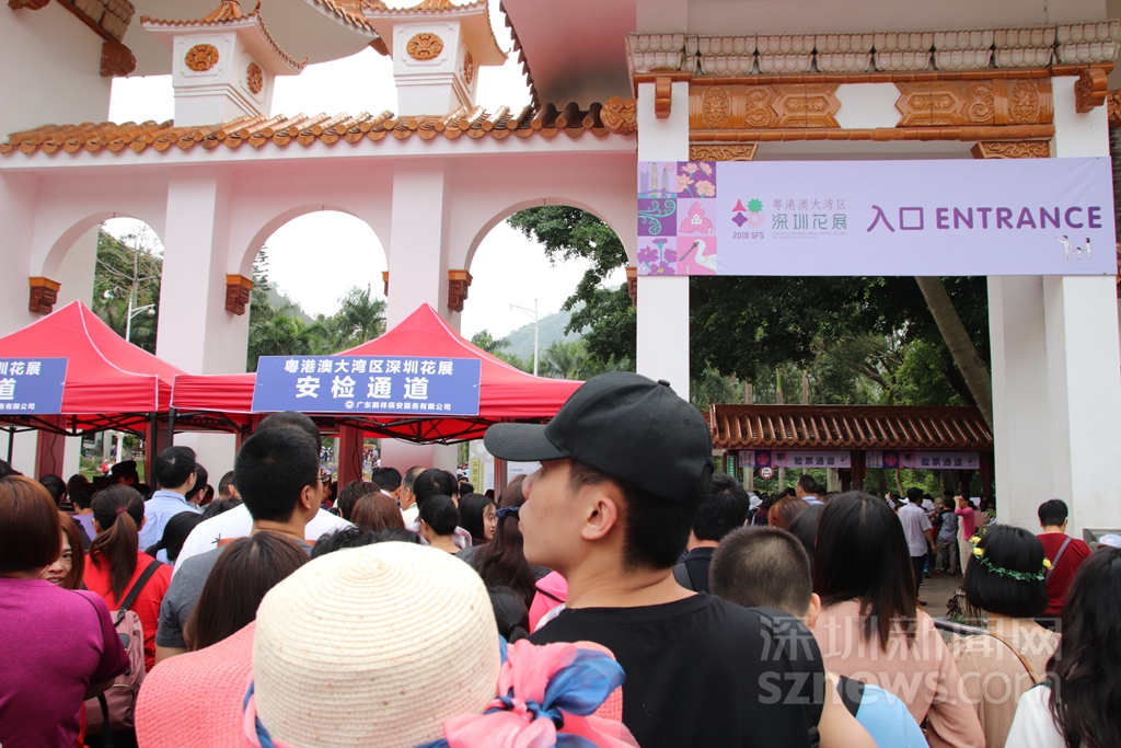 仙湖植物園入口處,排隊的人需經(jīng)過安檢,再進(jìn)入檢票通道