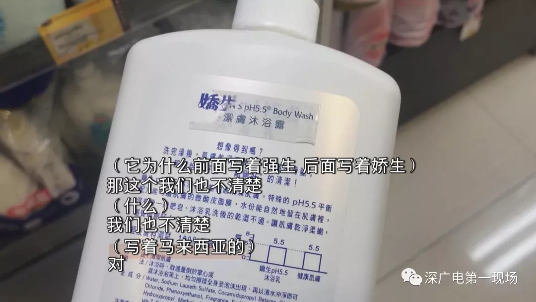 記者又去到毗鄰中英街市監(jiān)所的這家店,它這里同樣外包裝的強(qiáng)生沐浴露,瓶子背面的印刷卻全是英文,和其他店的版本一樣,側(cè)面貼有繁體中文標(biāo)識(shí)。