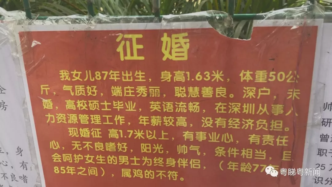 婚介角位于蓮花山公園,南門附近的棕櫚林內(nèi)。7日恰逢長假尾聲,不少男男女女前來認(rèn)真查看樹上征婚信息,也有長者前來蹲守,希望為子女找到好煙緣。