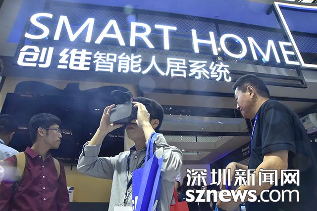 創(chuàng)維智能人居系統(tǒng)攤位前,一位市民正在體驗(yàn)