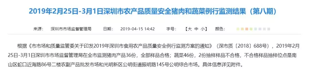 買菜請注意!深圳這兩個農(nóng)貿(mào)市場有蔬菜檢出不合格