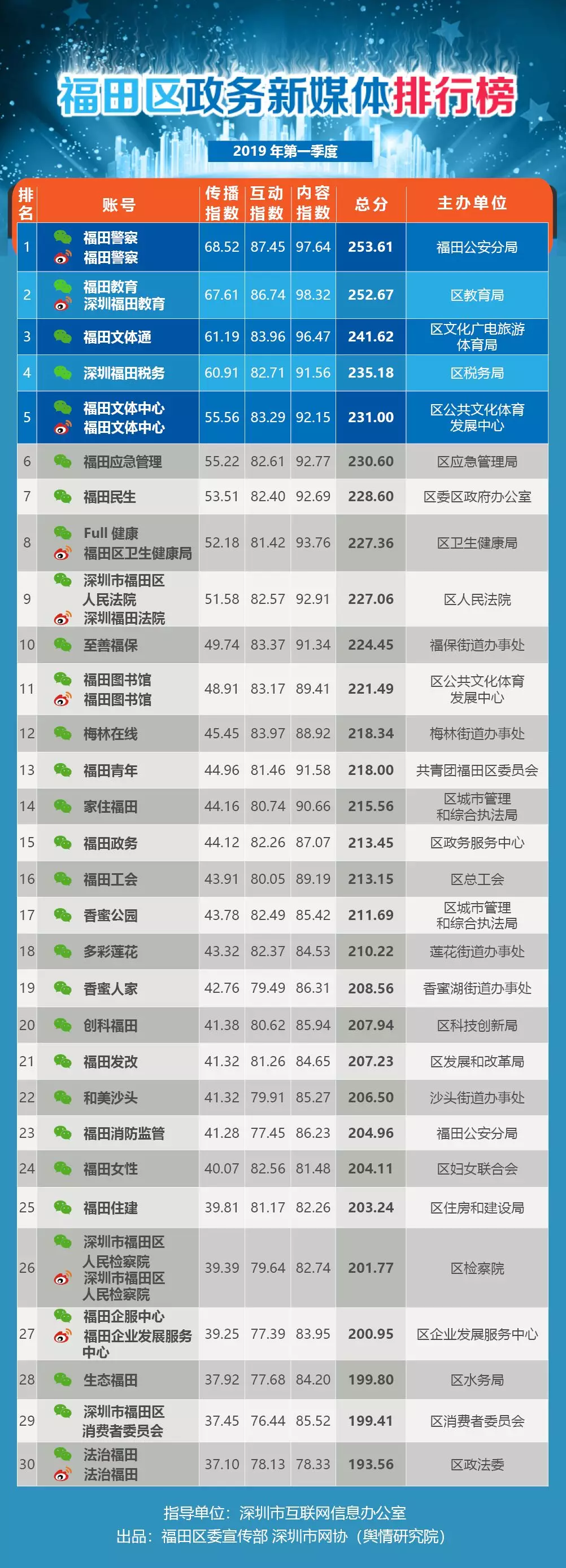 《福田區(qū)政務新媒體排行榜》出爐啦??!