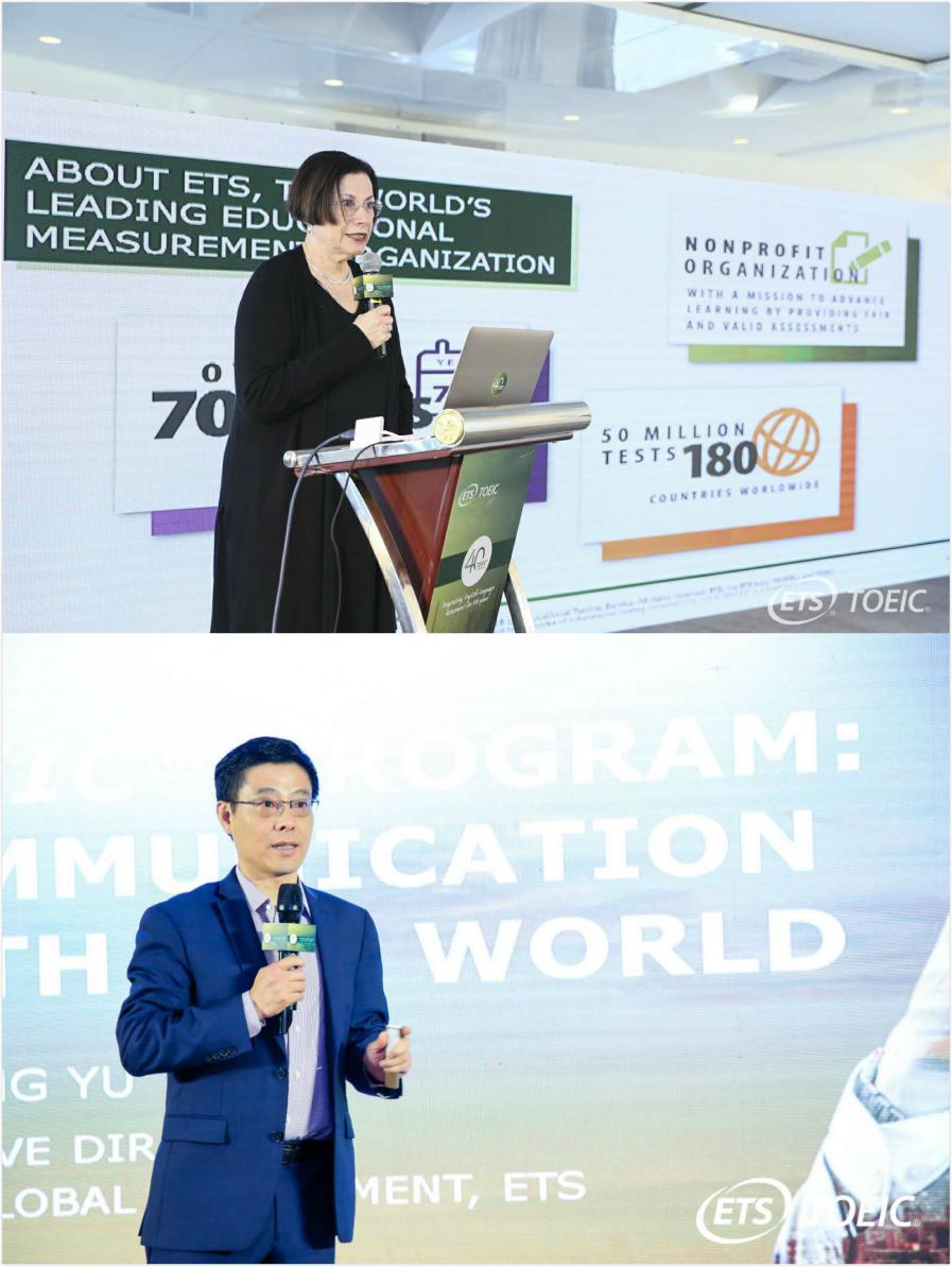 美國ETS國際部總經(jīng)理Shelly Punchatz、托業(yè)產(chǎn)品管理總監(jiān)余峰博士,代表ETS分別出席了上海站、深圳站慶典活動。在慶典活動中,兩位ETS總部高層回顧了TOEIC40年的卓越發(fā)展成就,以及助力全球多個國家及地區(qū)企業(yè)實現(xiàn)國際化發(fā)展的成功案例。他們表示,語言是架起經(jīng)濟和文化的橋梁,托業(yè)已成為全球應用最廣泛、最具有含金量的商務和職業(yè)英語測評標準。在國際化的商務溝通中,TOEIC越來越成為企業(yè)不可或缺的合作伙伴。