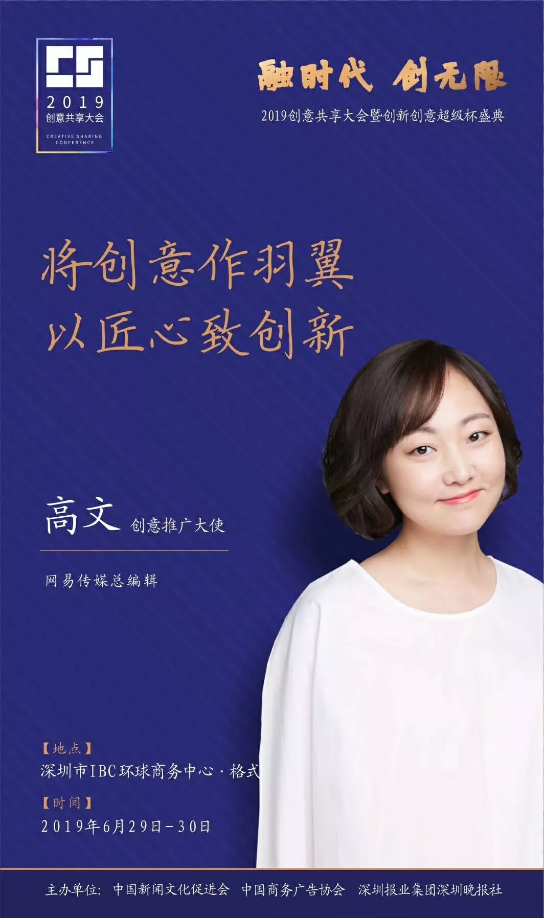 為了展現(xiàn)創(chuàng)意中國的精神風(fēng)貌和創(chuàng)意傳媒的文化力量,構(gòu)建創(chuàng)新創(chuàng)意共同體,擘畫美好圖景和未來趨勢,2019年6月29日至30日,由中國新聞文化促進會、中國商務(wù)廣告協(xié)會、深圳報業(yè)集團深圳晚報社等聯(lián)合主辦的“融時代創(chuàng)無限——2019創(chuàng)意共享大會暨創(chuàng)新創(chuàng)意超級杯盛典”將在深圳市IBC環(huán)球商務(wù)中心隆重舉辦。