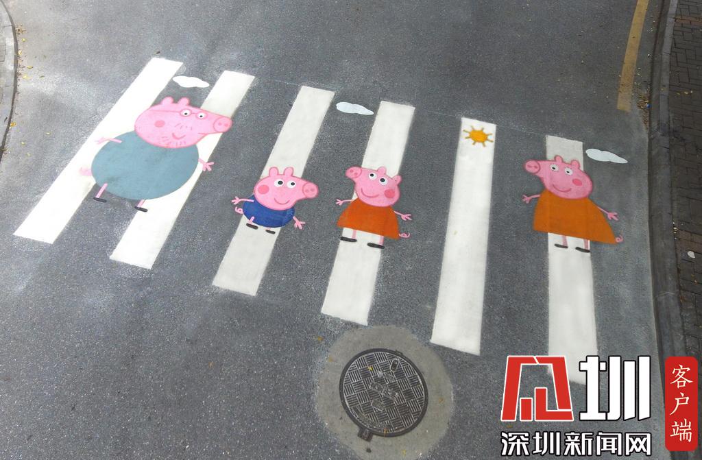 深圳試點兒童友好型交通設施,圖為彩繪有企鵝的斑馬線