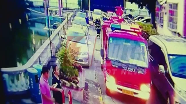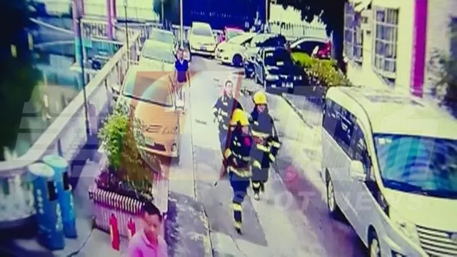 21日晚寶安一小區(qū)突然起火,消防人員出動,卻因消防通道停滿車 使消防車被堵火場外