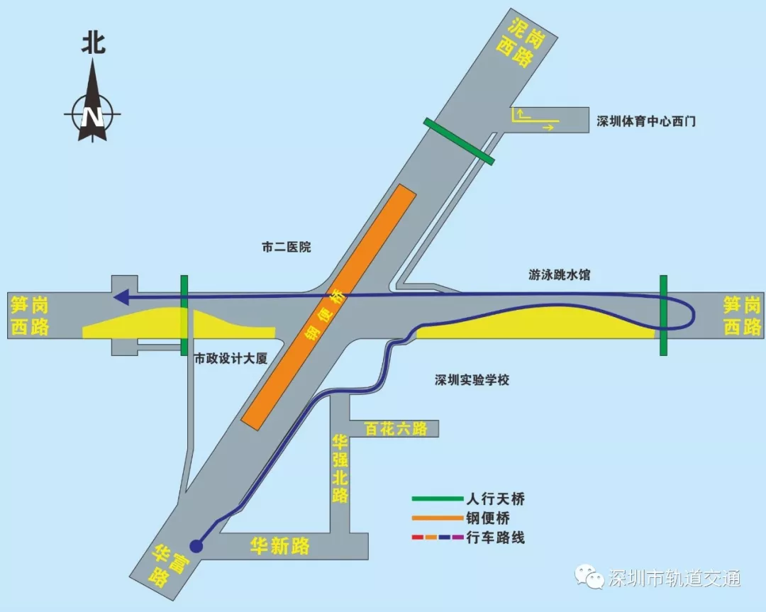 南轉(zhuǎn)西(華富路左轉(zhuǎn)筍崗西路):華富路通過右轉(zhuǎn)輔道進入筍崗西路,隨后在掉頭口處掉頭,直行通過原平交路口,完成左轉(zhuǎn)。(詳見圖7)