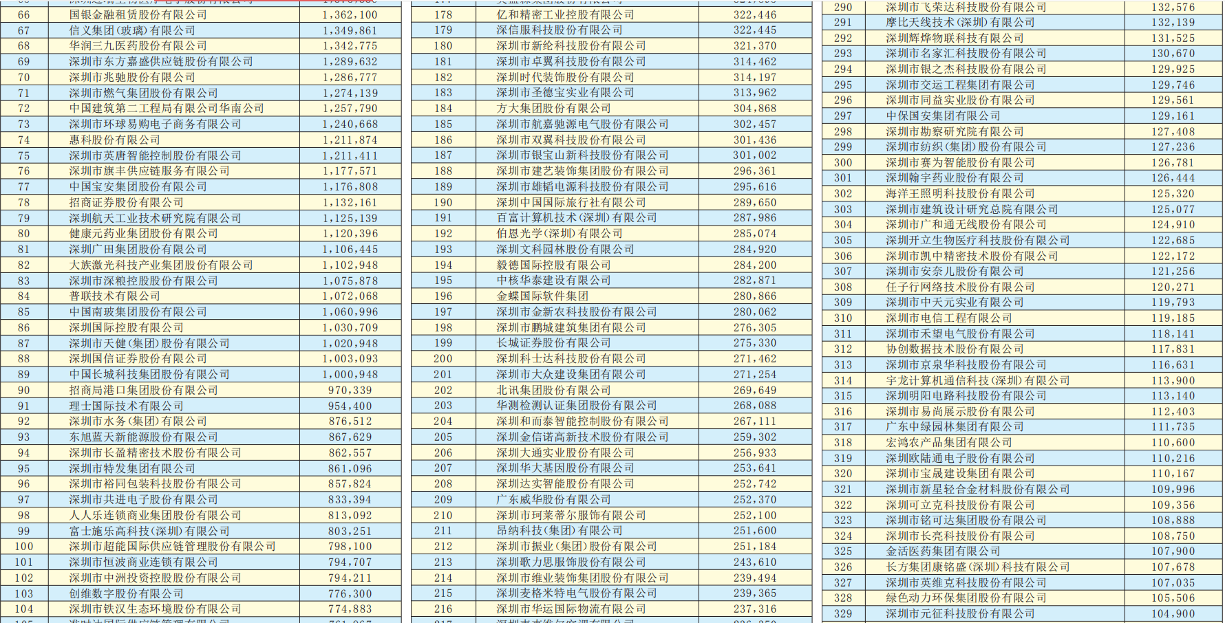 “2019深圳500強(qiáng)企業(yè)”公示 平安保險、華為、正威居前三