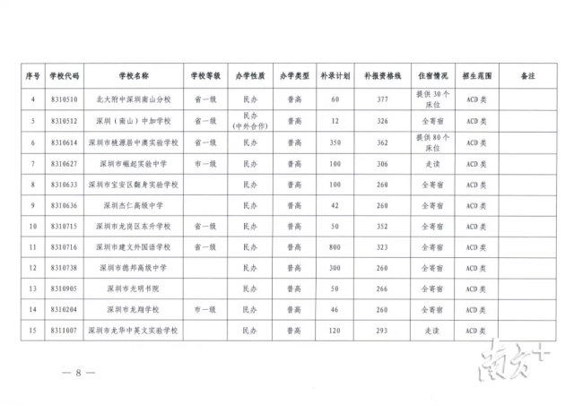 記者梳理發(fā)現(xiàn),目前,深圳市共有16所普高尚有擴(kuò)招及補錄計劃,補錄人數(shù)2430人,最高補錄分?jǐn)?shù)線為377分。此外,全市還有4所中職學(xué)校與7所中技學(xué)校進(jìn)行擴(kuò)招與補錄,補錄人數(shù)共1367人,最高補錄分?jǐn)?shù)線為316分。