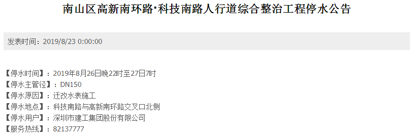 最怕突然的停水停電,早知道才能早做準備,記者從深圳水務局和中國南方電網官網獲取了26日、27日相關停水停電信息。26日、27日,因地鐵10號線工程和科技南路人行道綜合整治工程需要,福田區(qū)和南山區(qū)部分地方將停水,同時,因計劃檢修,停電區(qū)域較多,更多具體的停水停電信息整理如下。