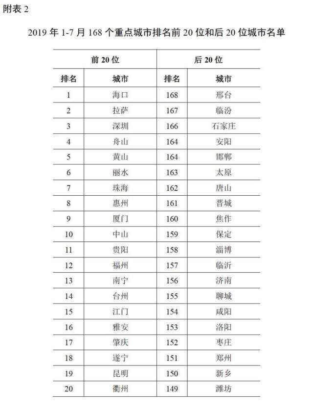 晶報(bào)2019年8月29日訊 8月27日,生態(tài)環(huán)境部發(fā)布了2019年7月和1-7月全國空氣質(zhì)量狀況。數(shù)據(jù)顯示,168個(gè)重點(diǎn)城市1-7月空氣質(zhì)量排名中,深圳位于??凇⒗_之后,排名全國第三。