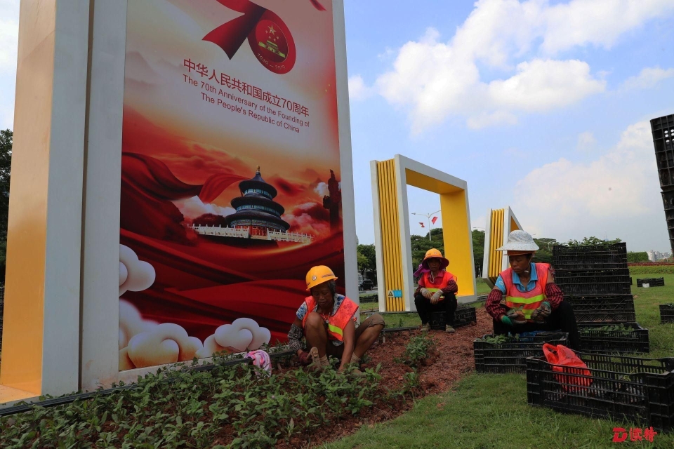 鄧小平畫像廣場(chǎng)上,設(shè)計(jì)了“祥云”構(gòu)圖,進(jìn)行新的花卉布置,在慶祝新中國成立70周年這個(gè)特別的日子,表達(dá)出對(duì)深圳美好未來的期許。