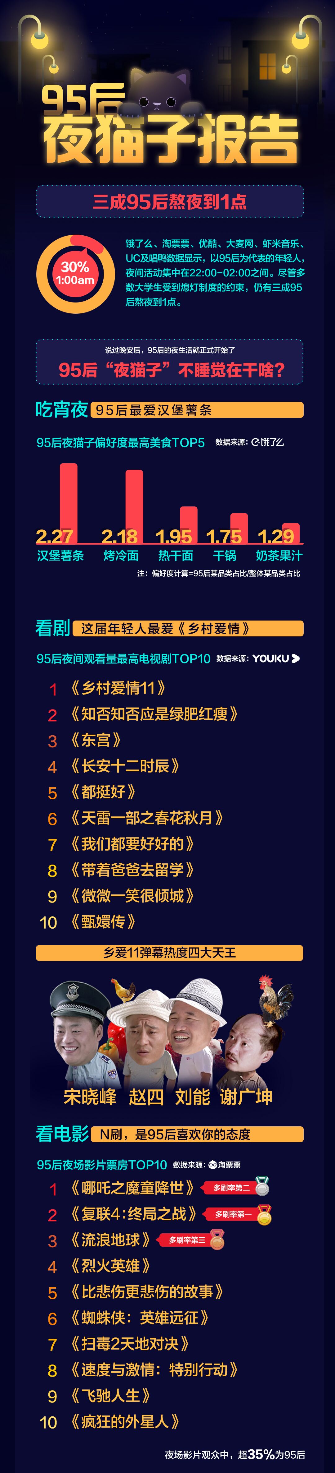 《95后夜貓子報告》顯示,95后年輕人在夜間觀影、追劇、看演出等文化消費領(lǐng)域表現(xiàn)十分活躍;南方城市的95后夜貓子在各項消費活動中表現(xiàn)尤其突出。