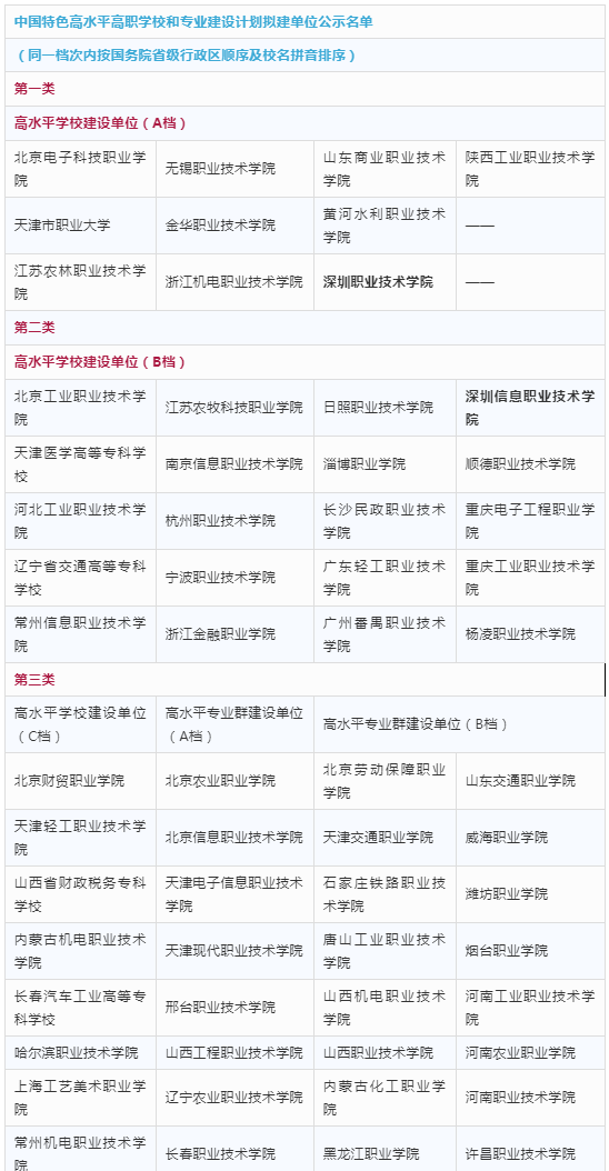 今天上午,教育部和財政部正式發(fā)布《關于中國特色高水平高職學校和專業(yè)建設計劃擬建單位的公示》,經高職學校自愿申報,省級教育部門、財政部門審核推薦,中國特色高水平高職學校和專業(yè)建設計劃項目建設咨詢專家委員會評審,教育部、財政部審定,擬立項中國特色高水平高職學校和專業(yè)建設計劃建設單位197個(簡稱“雙高計劃”),現(xiàn)予公示。公示期7天(2019年10月25日—10月31日)。