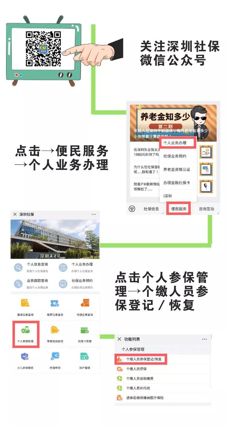 怎樣給自己參保繳費?深戶靈活就業(yè)人員有以下幾種渠道為自己參保繳費:登錄深圳市社會保險基金管理局官網(wǎng)(http://hrss.sz.gov.cn/szsi)上的個人網(wǎng)上服務(wù)系統(tǒng),自助辦理。關(guān)注“深圳社保”微信公眾號,在微信上辦理。在社保自助終端機(jī)上辦理。前往社保機(jī)構(gòu)的辦事窗口辦理。