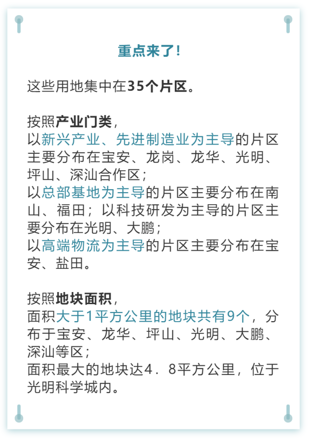 根據(jù)梳理,此次可供應(yīng)產(chǎn)業(yè)用地共35塊,總面積超過30平方公里。其中深圳市域范圍內(nèi)可供應(yīng)產(chǎn)業(yè)用地約25平方公里,深汕合作區(qū)可供應(yīng)產(chǎn)業(yè)用地約5平方公里,未來凡是符合深圳產(chǎn)業(yè)導(dǎo)向,符合高質(zhì)量發(fā)展要求的企業(yè)和項(xiàng)目都將得到充足的空間保障。