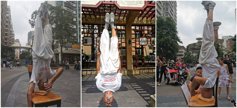 倒立喝水、倒立吊環(huán)、倒立寫字…無一不能