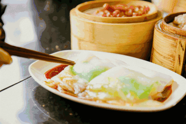 當(dāng)天還灰蒙蒙,大地還在沉睡之時(shí),氤氳的水蒸氣便在賣腸粉的小店彌漫升騰,那是開(kāi)啟一天忙碌的訊號(hào)。用米漿和蔬菜肉末雞蛋等等一起,在一格格的小抽屜里面蒸熟,再將特制的醬料淋上(喜辣的還可以加上辣椒),一道美味就此誕生。