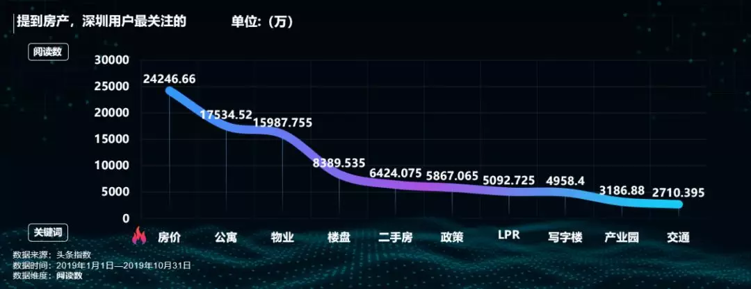 數(shù)據(jù)顯示,今年提到房產(chǎn),深圳網(wǎng)友最關(guān)注的是“房價(jià)”、“公寓”、“物業(yè)”這三大關(guān)鍵詞。