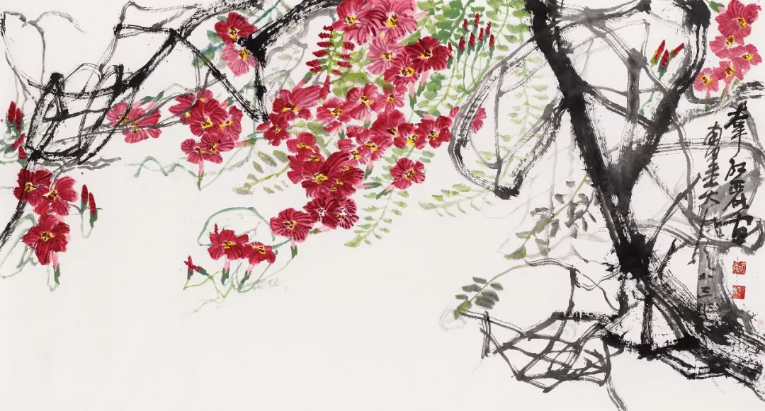 記者在魏治平的工作室看到,他創(chuàng)作的凌霄每一幅都有所不同,不僅畫出了凌霄花的千姿百態(tài),還呈現(xiàn)了凌霄根、藤、葉的獨(dú)特風(fēng)姿。葉茂花紅、根老彌壯、藤連天下,每一幅凌霄都代表了魏治平作為藝術(shù)家對(duì)國(guó)家的美好祝福。在此次展覽上,觀眾也能看到魏治平最新創(chuàng)作的凌霄。