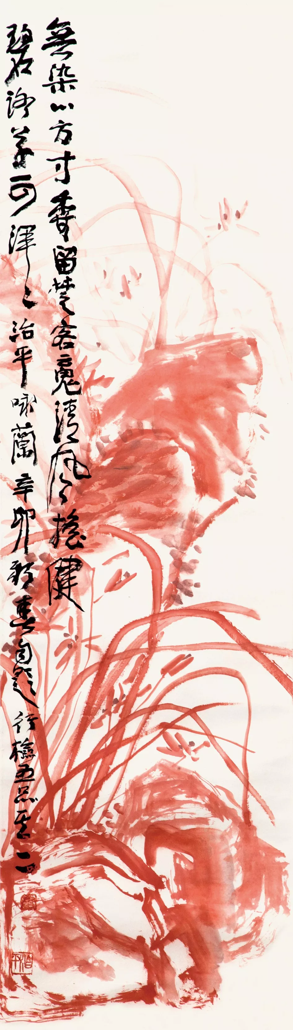 作品是人性在宣紙上的延伸。魏治平如是說,亦如是踐行。本次展覽還會(huì)展出一套用朱砂繪成的“行鑒五品”?!靶需b五品”是魏治平結(jié)合“歲寒三友”與“花中四君子”提出的概念,指的是梅、蘭、竹、菊、松。魏治平認(rèn)為,“蘭,空谷幽香,孤芳自賞;竹,篩風(fēng)弄月,瀟灑一生;菊,凌霜自行,不趨炎勢(shì);梅,剪雪裁冰,一身傲骨;松,正直蒼健,常青不老。時(shí)時(shí)以五品自檢,能觀照本我;事事用五品自律,可清澈心智?!?/p>