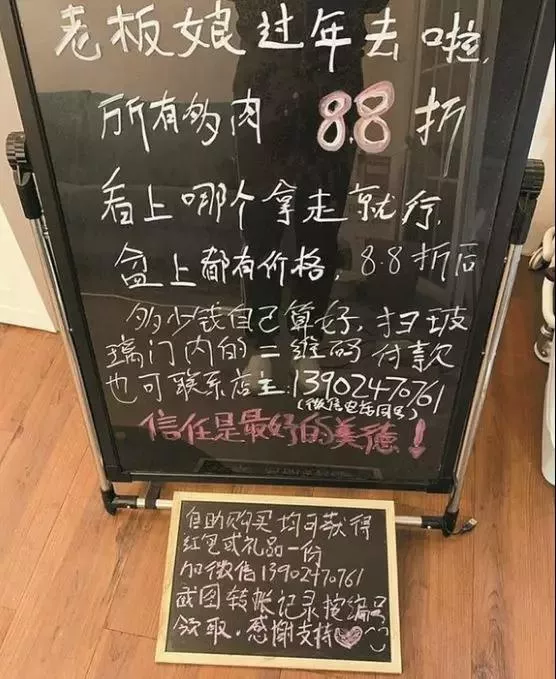 2019年春節(jié)期間,一位花店老板娘過年回家時(shí),把幾百盆植物擺在門口,并放置了價(jià)格牌和二維碼。