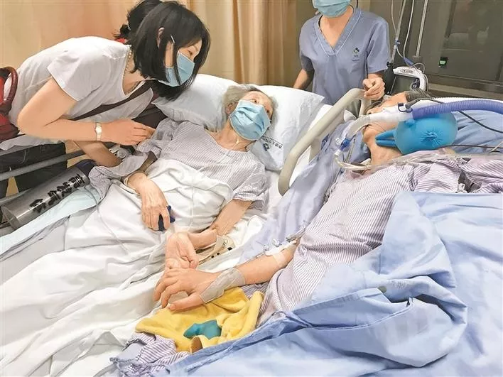 7月27日20點(diǎn)48分,香港大學(xué)深圳醫(yī)院的ICU病房里,兩位病重的老人的手握在了一起。在并排擺放的兩張病床上躺著的,是一對(duì)攜手恩愛57年的耄耋伉儷——高先生和彭女士。這兩位都已病重住院的老人,完成了或許是他們?nèi)松械淖詈笠幻?。這一幕,讓病床邊的許多親屬和醫(yī)務(wù)人員都淚流滿面。