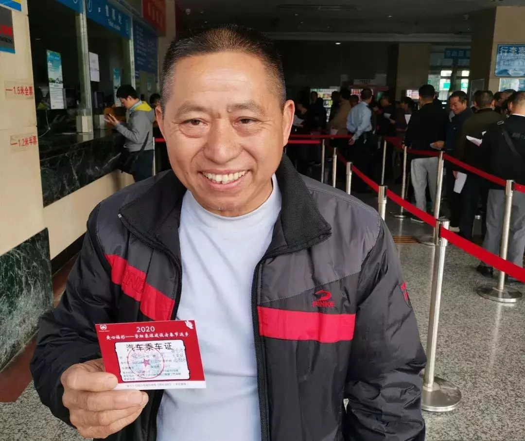 來自四川省南充市的魏先生一大早便來到取票現(xiàn)場(chǎng),成功取到票的他,滿臉掛著笑容。據(jù)魏先生介紹,1992年他來深圳務(wù)工,平時(shí)靠打散工,收入不高,上次回家已經(jīng)是6年前了,他無比想念家里的老母親和三個(gè)小孩,無奈每年春節(jié)都搶不到票,今年,在老鄉(xiāng)的告知下得知深圳福彩這個(gè)公益活動(dòng),總算是買到了回家的車票?!拔也欢W(wǎng)絡(luò)買票,老鄉(xiāng)拿我的手機(jī)幫忙操作,今年終于可以回家了,很開心!而且汽車直接送到家附近,不需要轉(zhuǎn)車,很方便,感謝福彩!”