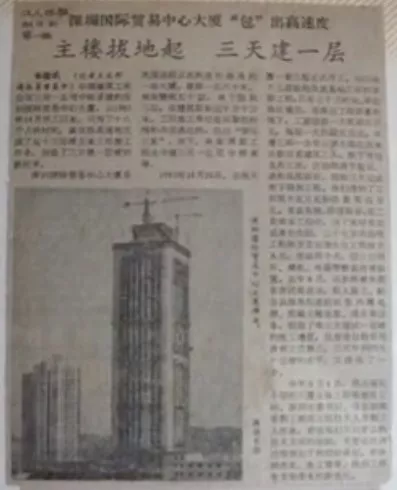 不少人對(duì)深圳的第一印象是來自一條新聞:深圳國貿(mào)大廈工程,取得了“三天一層樓”的速度。