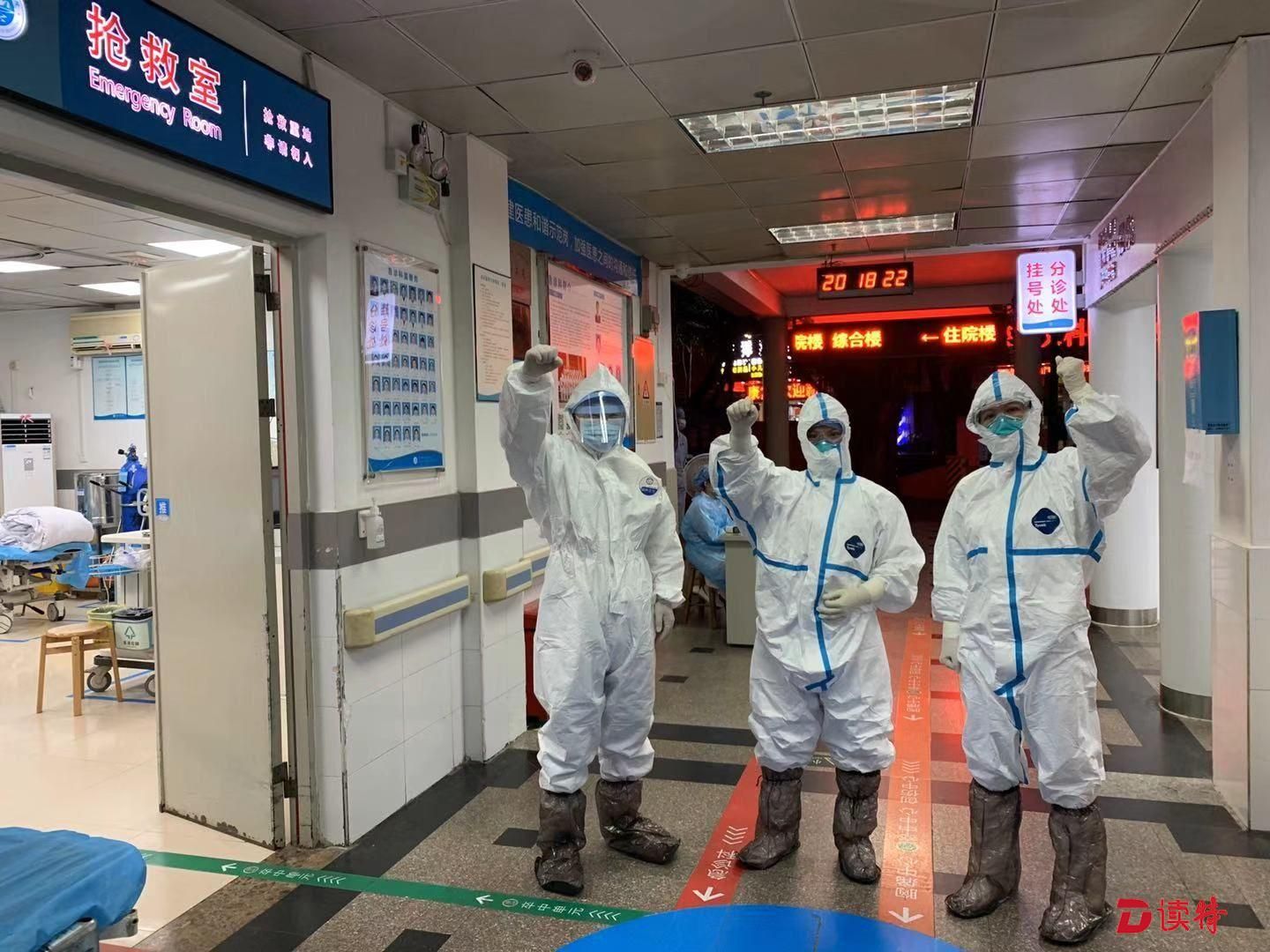 1月24日大年三十,石巖人民醫(yī)院發(fā)熱門診醫(yī)護人員在診室門口為自己加油!