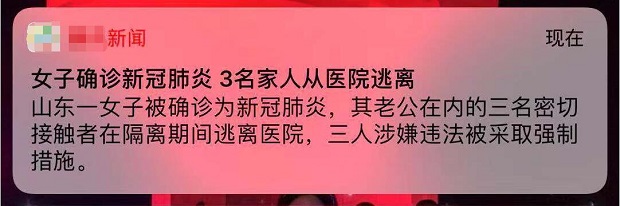 這個(gè)春節(jié),有點(diǎn)不一樣。疫情當(dāng)前,需要全民齊努力。前不久一條新聞彈窗,相信很多人都看到了:山東一女子被確診為新型冠狀病毒感染的肺炎,她的老公等三名密切接觸者在隔離期間逃離醫(yī)院,三人涉嫌違法被采取強(qiáng)制措施。