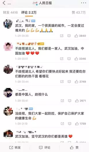 我們抓緊時間防疫,也抓緊時間去溫暖身邊受疫情傷害的湖北人、廣東人、浙江人……言語雖輕,但一聲聲加油足以撐起抗疫信心。