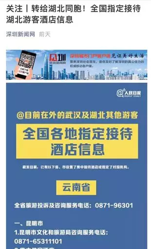 日前深圳就公布了一批指定接待湖北游客的酒店信息,深圳旅游業(yè)界積極行動,飯店協(xié)會業(yè)也發(fā)出倡議:疫區(qū)游客是我們的同胞,不僅不能歧視,要伸出援手幫助他們!