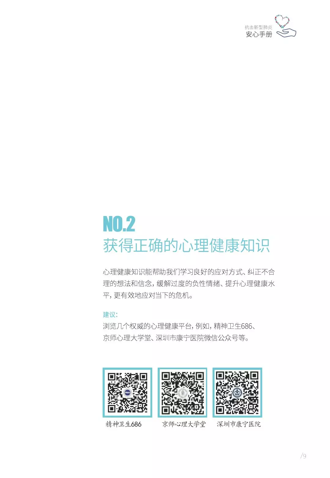 抗擊新型肺炎“安心手冊”由深圳市精神衛(wèi)生中心/深圳市康寧醫(yī)院支持,深圳市康寧醫(yī)院始建于1980年,是深圳市唯一一家集預防、醫(yī)療、康復、科研、教學于一體的公立三甲精神病??漆t(yī)院。2010年以來,醫(yī)院連續(xù)九年名列復旦大學醫(yī)院管理研究所中國最佳??婆判邪窬駥?漆t(yī)院前十位;2017年榮膺第五屆全國文明單位;2019年精神科獲評廣東省高水平臨床重點???。醫(yī)院服務在各類顧客體驗度和公眾滿意度測評中,名列前茅。