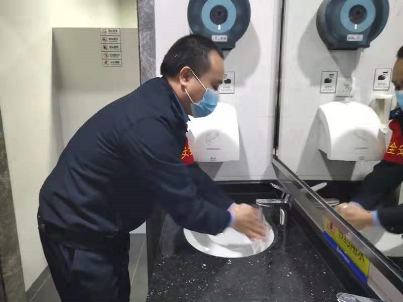 由于現(xiàn)在是肺炎疫情嚴重防控期間,按照車隊要求,邱華出車前先去洗手間把手洗干凈,然后接受問詢告知、酒精測試、測量體溫、配戴口罩等。