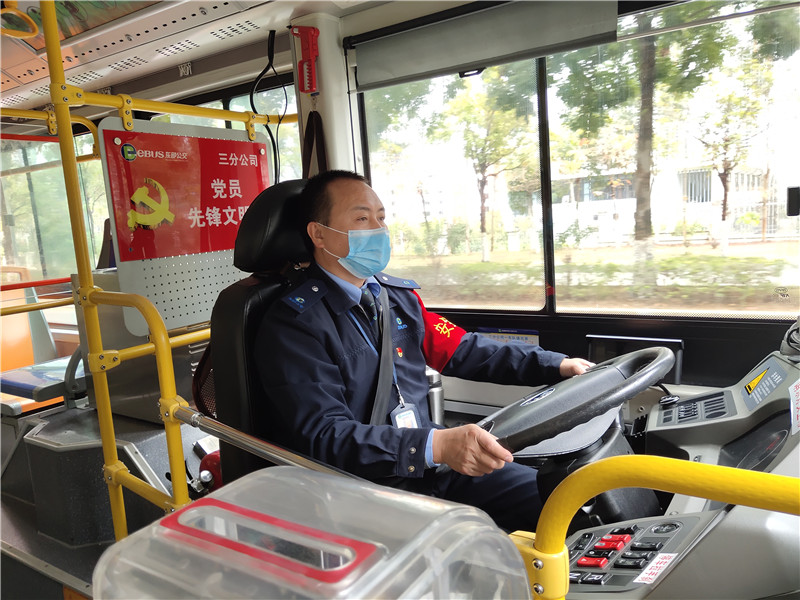 東部公交三分公司駕駛員邱華在崗位上。