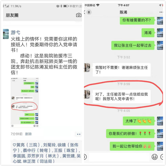 奔赴抗擊新冠肺炎一線的深圳市婦幼保健院團(tuán)支書陳浠發(fā)給科主任的信息