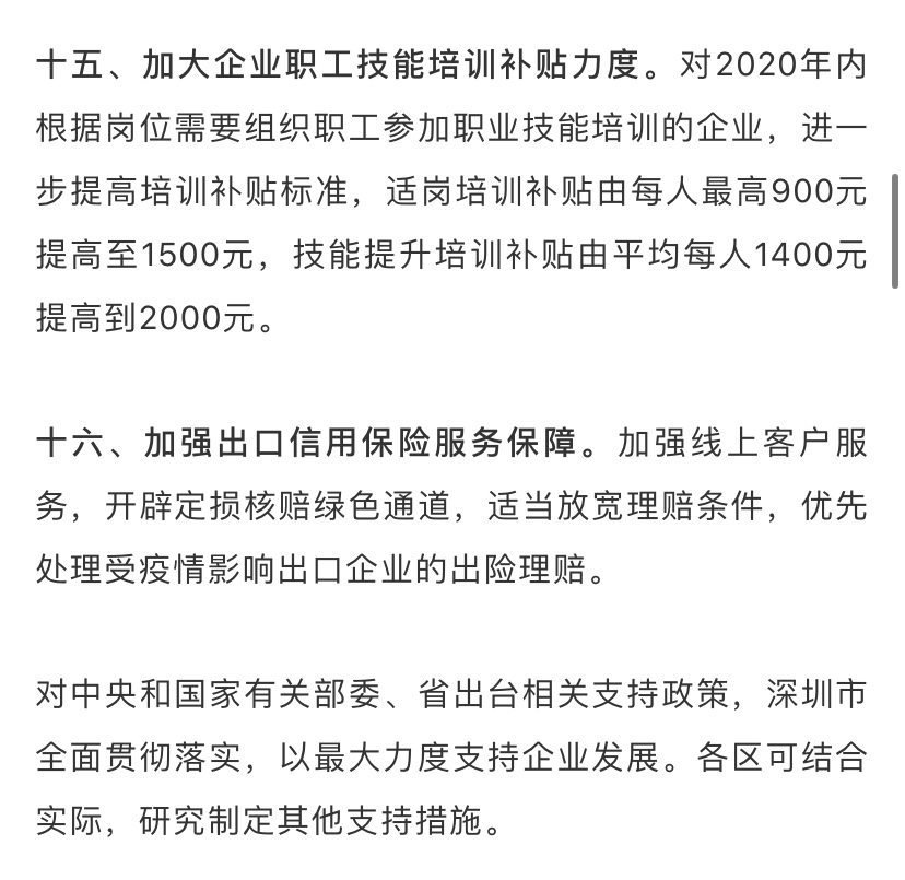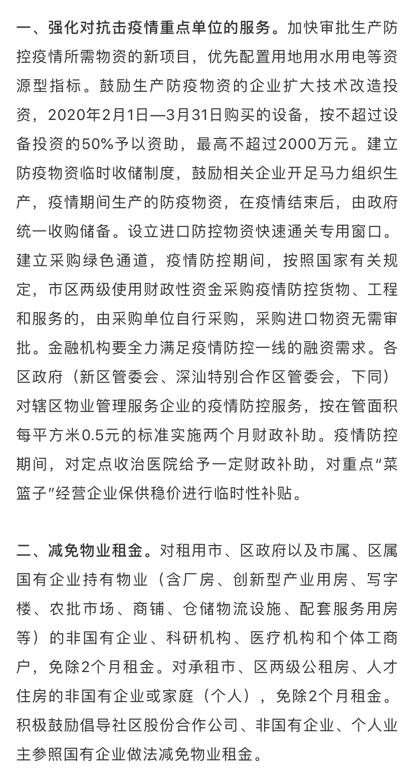 據(jù)了解,為深入貫徹落實(shí)習(xí)近平總書記關(guān)于堅(jiān)決打贏疫情防控阻擊戰(zhàn)的重要指示精神,全面落實(shí)黨中央國務(wù)院和省委省政府關(guān)于做好新型冠狀病毒感染的肺炎疫情防控工作的決策部署,在做好防控工作的同時統(tǒng)籌抓好改革發(fā)展穩(wěn)定各項(xiàng)工作,支持企業(yè)共渡難關(guān),保障城市平穩(wěn)運(yùn)行和經(jīng)濟(jì)穩(wěn)定增長,深圳市政府特制定該工作措施。