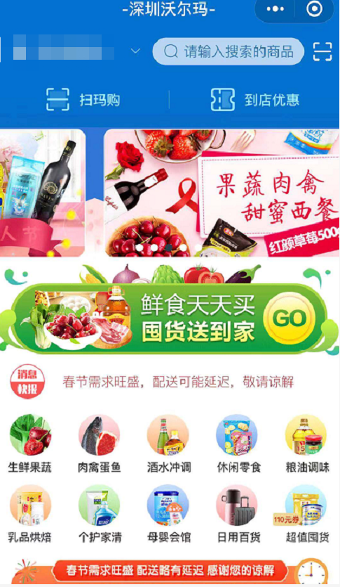 商品情況:除了生鮮日用品,母嬰用品、廚具電器都有。但春節(jié)需求旺盛,需提前搶購(gòu),可先看看自己所在地區(qū)是否提供配送。