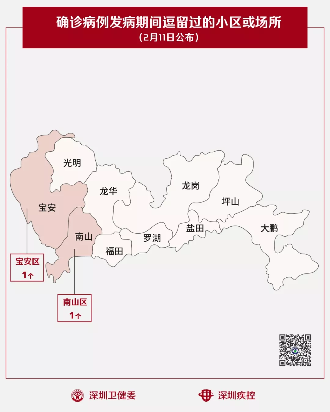 經(jīng)過疾控專業(yè)人員的流行病學(xué)調(diào)查確認,2月11日,深圳公布的有新確診病人發(fā)病期間逗留過的小區(qū)(場所),新增了2個。