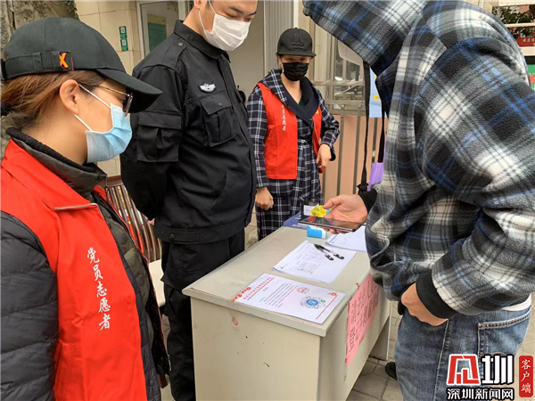 “您好,請(qǐng)問您是小區(qū)哪一個(gè)樓棟、哪一個(gè)單元?姓名?您好,請(qǐng)問您完成了i深圳的自主申報(bào)了嗎?請(qǐng)出示你的出入碼,好了,請(qǐng)進(jìn)”。這是發(fā)生在鵬興花園一期疫情防控點(diǎn)的一幕,鵬興社區(qū)第一書記與區(qū)網(wǎng)格突擊隊(duì)成員、小區(qū)黨支部的志愿者們,一道協(xié)助小區(qū)管理處工作人員在做好進(jìn)出車輛、人員進(jìn)行排查登記、體溫檢測(cè)等防護(hù)措施的基礎(chǔ)上,對(duì)進(jìn)出小區(qū)住戶均要求出示出入碼,沒有出示的立即要求居民自主申報(bào)。