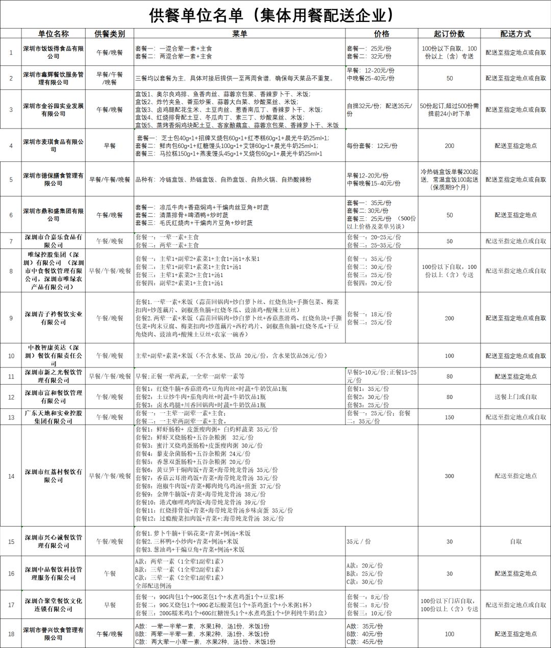 為了保障復工后集體用餐的安全,深圳市市場監(jiān)督管理局協(xié)調(diào)了安全的訂餐渠道,目前已經(jīng)有79家供餐單位!