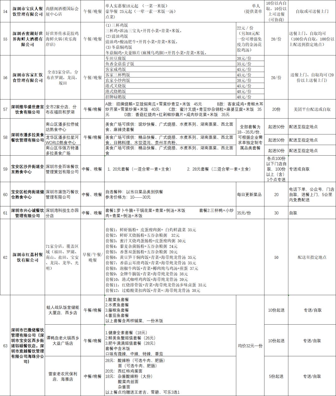 4、訂餐單位可以采取專人自取、餐飲單位送餐、網(wǎng)絡(luò)訂餐平臺配送服務(wù)等方式。