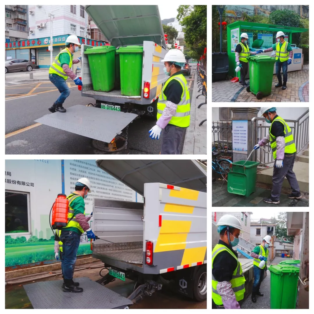 上午7點半,第一個到崗的田夫珍開始測量體溫,消毒后穿上印有“深能環(huán)保”的馬甲,戴上安全帽,檢查車輛消殺情況。8點整,他和14名同事一起出發(fā),分赴鹽田7條線路,開始和餐廚垃圾打交道。