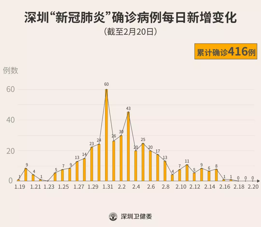 至此,深圳確診人數(shù)416人,出院人數(shù)222人,在院人數(shù)192人,出院總?cè)藬?shù)已超過確診總?cè)藬?shù)的一半。