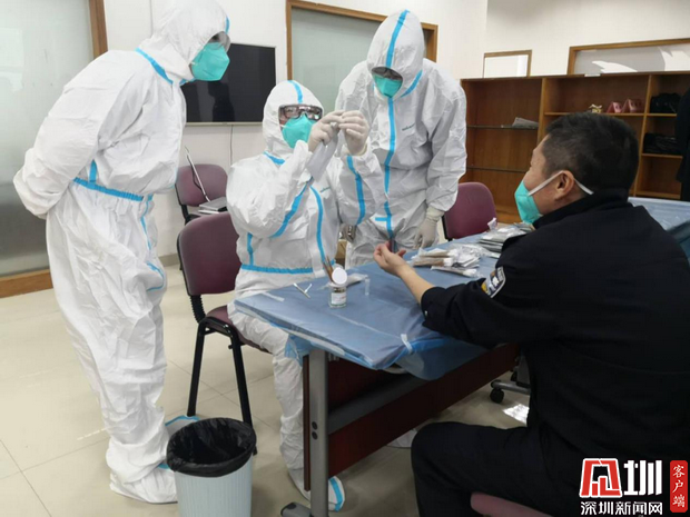 深圳強(qiáng)戒一所為封閉備勤的民警開(kāi)展病毒抗體檢測(cè)。